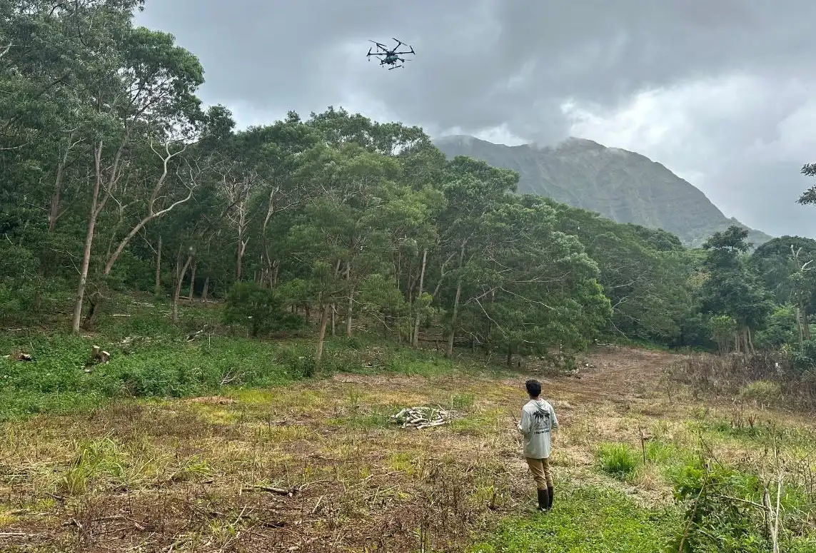 We conducted two trials at Agricultural Research Center at Maunawili, Oʻahu in the Spring of 2024 and 2025. Here, a 1-acre stand of wilt-resistant koa trees was treated with Delegate WG via a drone aerial sprayer and we compared moth trap capture and reared seed predators to a untreated 1-acre wilt resistant koa stand.